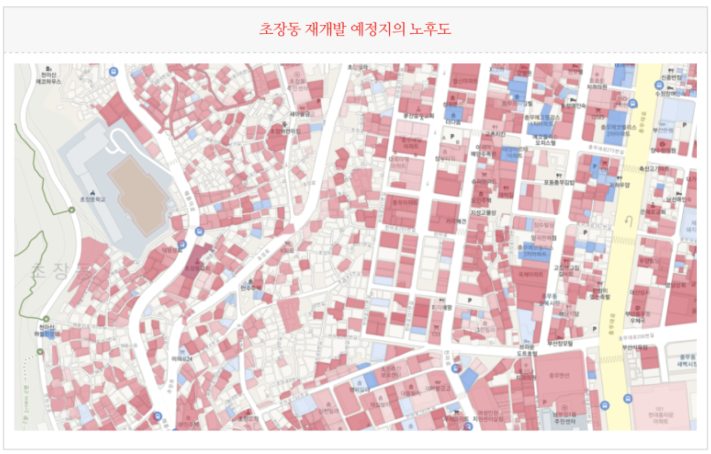 사타신청된 초장동 재개발 예정지의 노후도 입니다.