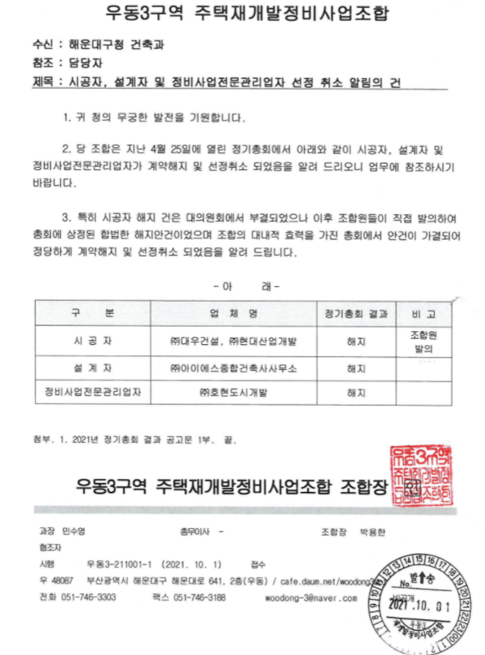 해운대 우동3구역 재개발의 최근 조합장 선출 소식과 물건 정보를 업데이트 해 드리겠습니다.