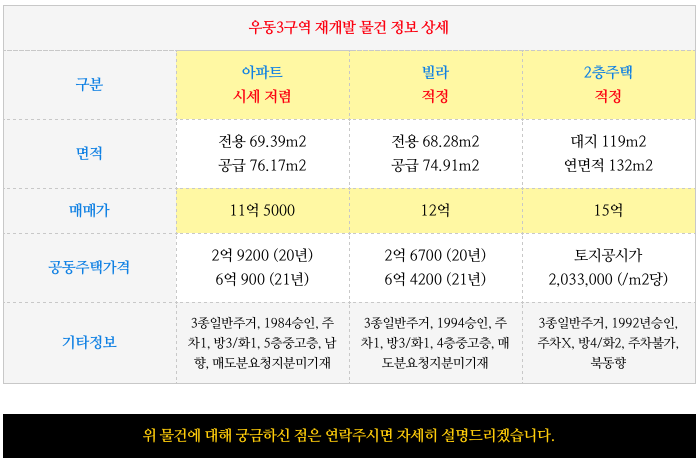 우동3구역은 단지의 규모와 위치면에서 실거주 환경이 더 우수하기 때문에 다양한 수요층을 안을수 있어