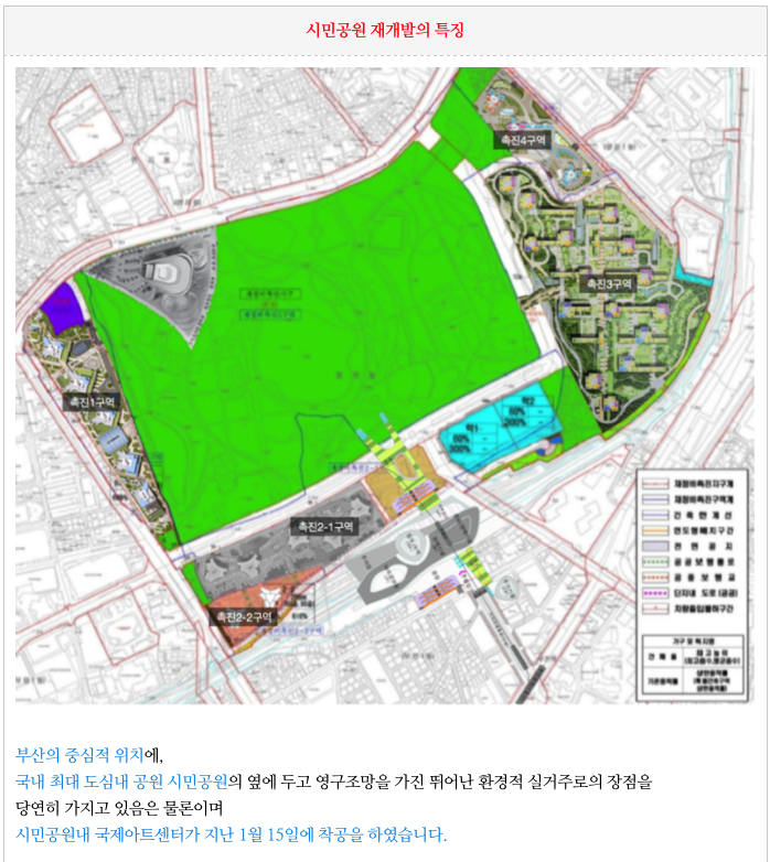 부산 시민공원 재정비 촉진구역의 특징 을 간략히 정리해 드립니다.
