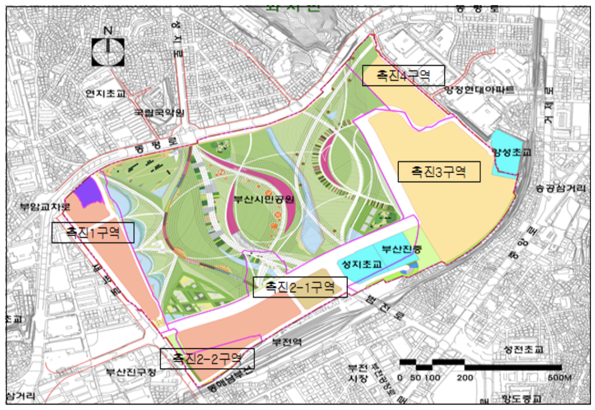 부산 시민공원 촉진4구역과 촉진3구역 재개발 은