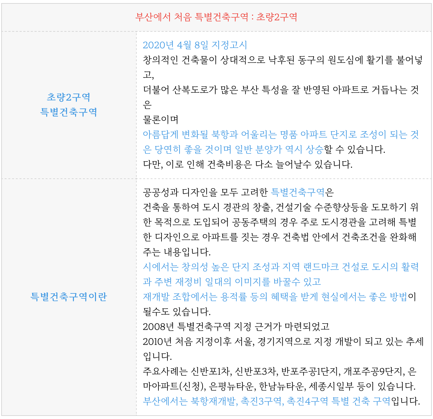 부산의 첫번째 특별건축구역으로 지정이 되어 향후 아파트의 외관등이 더욱 기대가 되는 곳입니다.