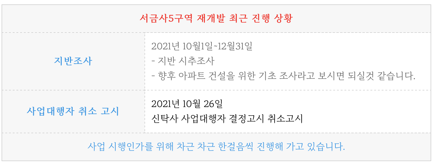 서금사5구역 재개발 의 최근 진행 중 가장 큰 이슈는