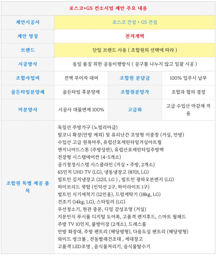 후분양, 조합원분담금 입주시, 고급마감재 등은 물론이며