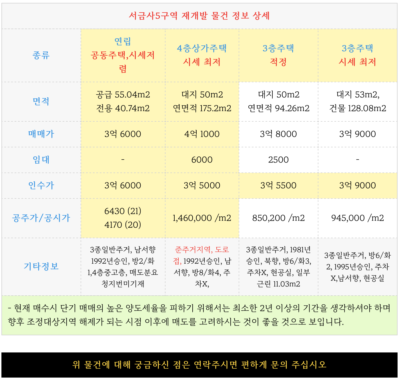 스카이브릿지 " 서금사5구역 재개발 : 사시준비 " : 좋은 매물들(주택,연립등)