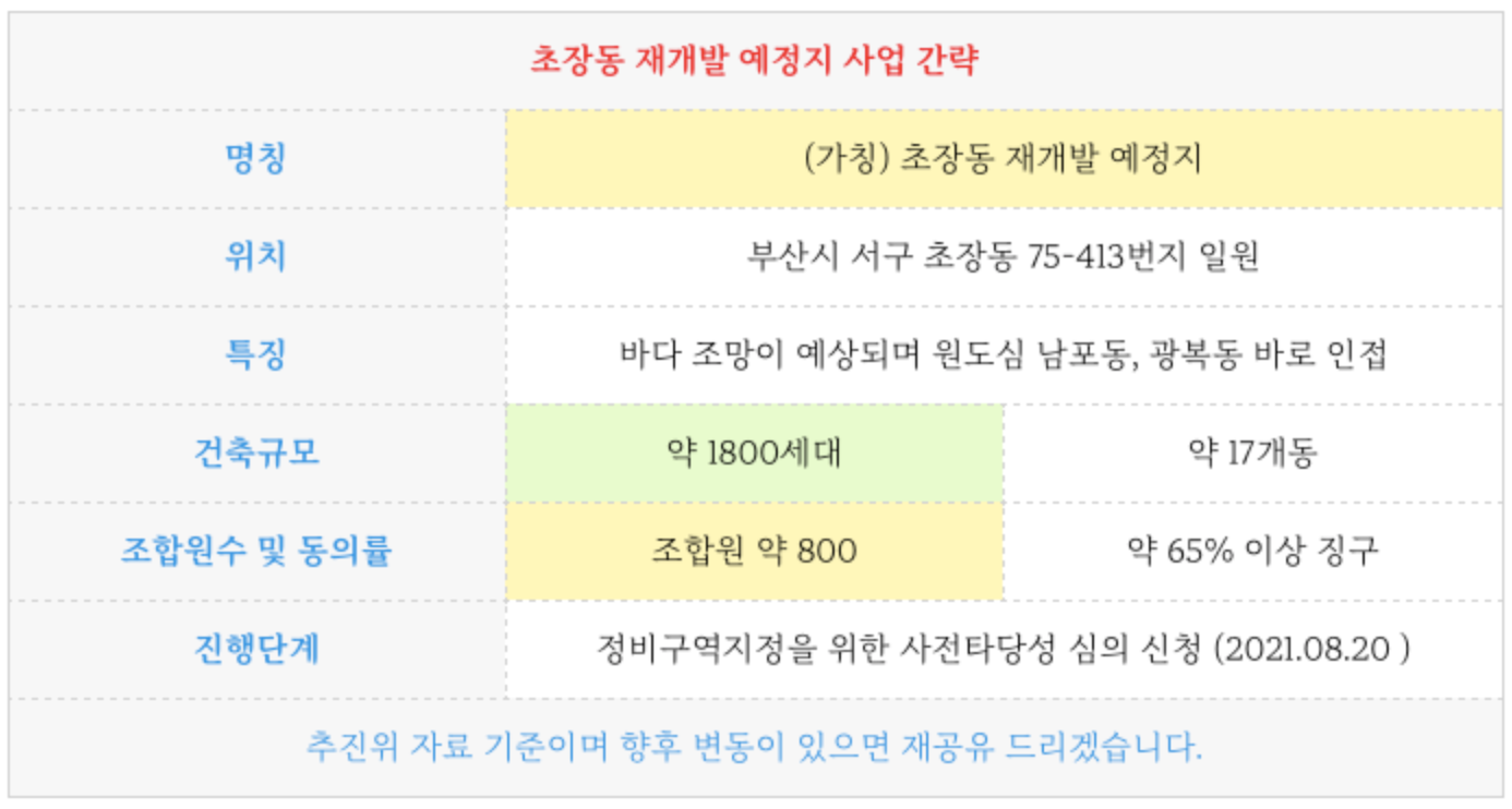 부산의 많은 예정지중에서도 재개발의 공식적인 절차 1단계를 진행중에 있습니다.