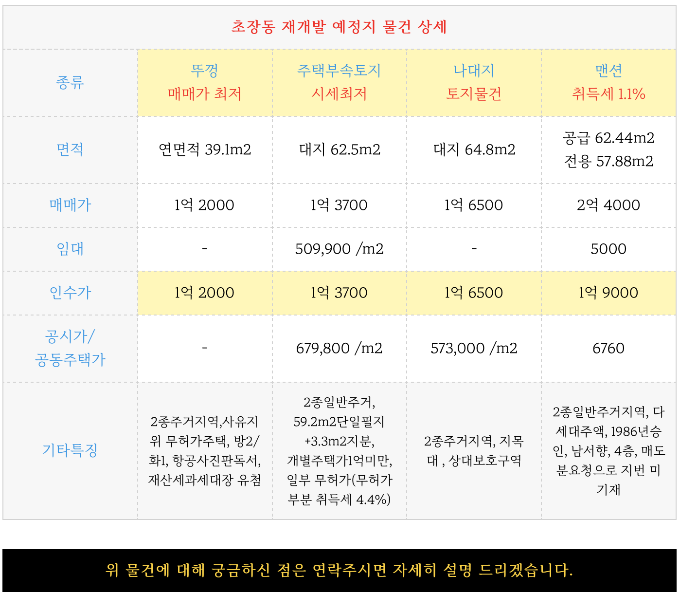 초장동 재개발 예정지 의 물건을 업데이트해 드리겠습니다.