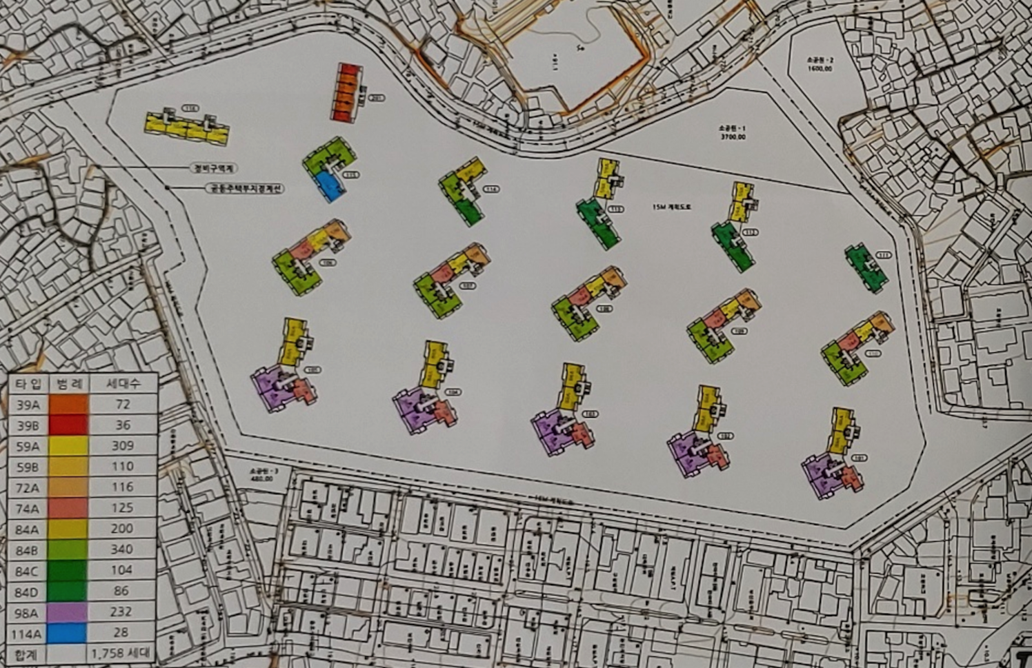 현재의 다소 낡은 주거 환경이 대규모 아파트 단지가 조성이 되면 주거 환경이 크게 변화될 것으로 보입니다.