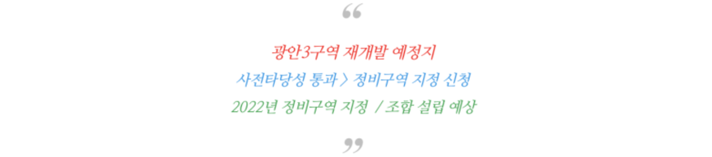사실상 광안동의 너무 많은 예정지들과는 다르게 상대적으로 안정적으로 보입니다.