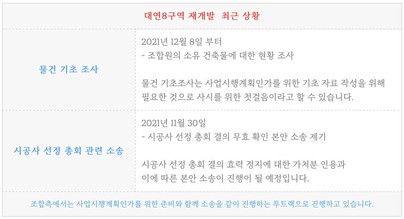 대연8구역 재개발의 최근 진행 상황 을 먼저 공유 드립니다.