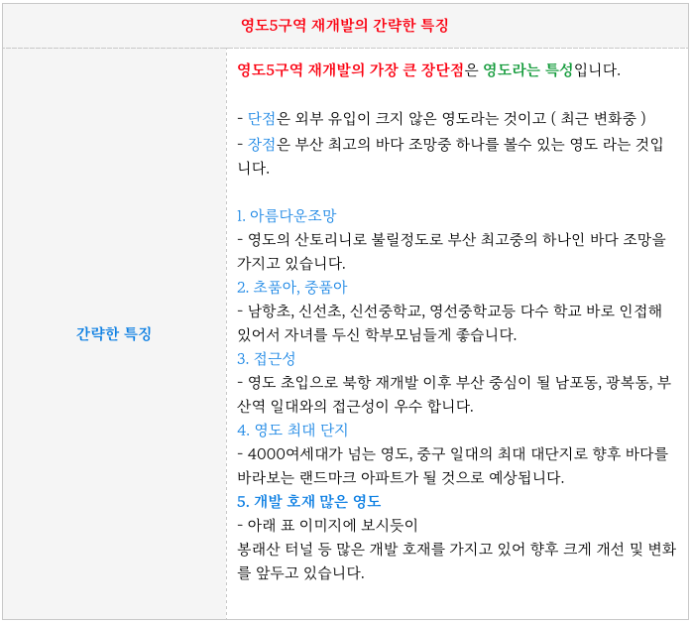 영도5구역 재개발의 간략한 특징을 다시 한번 정리 드립니다.