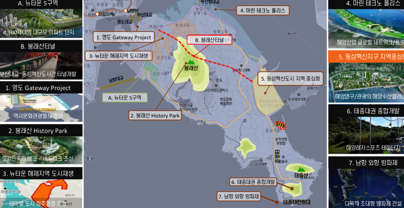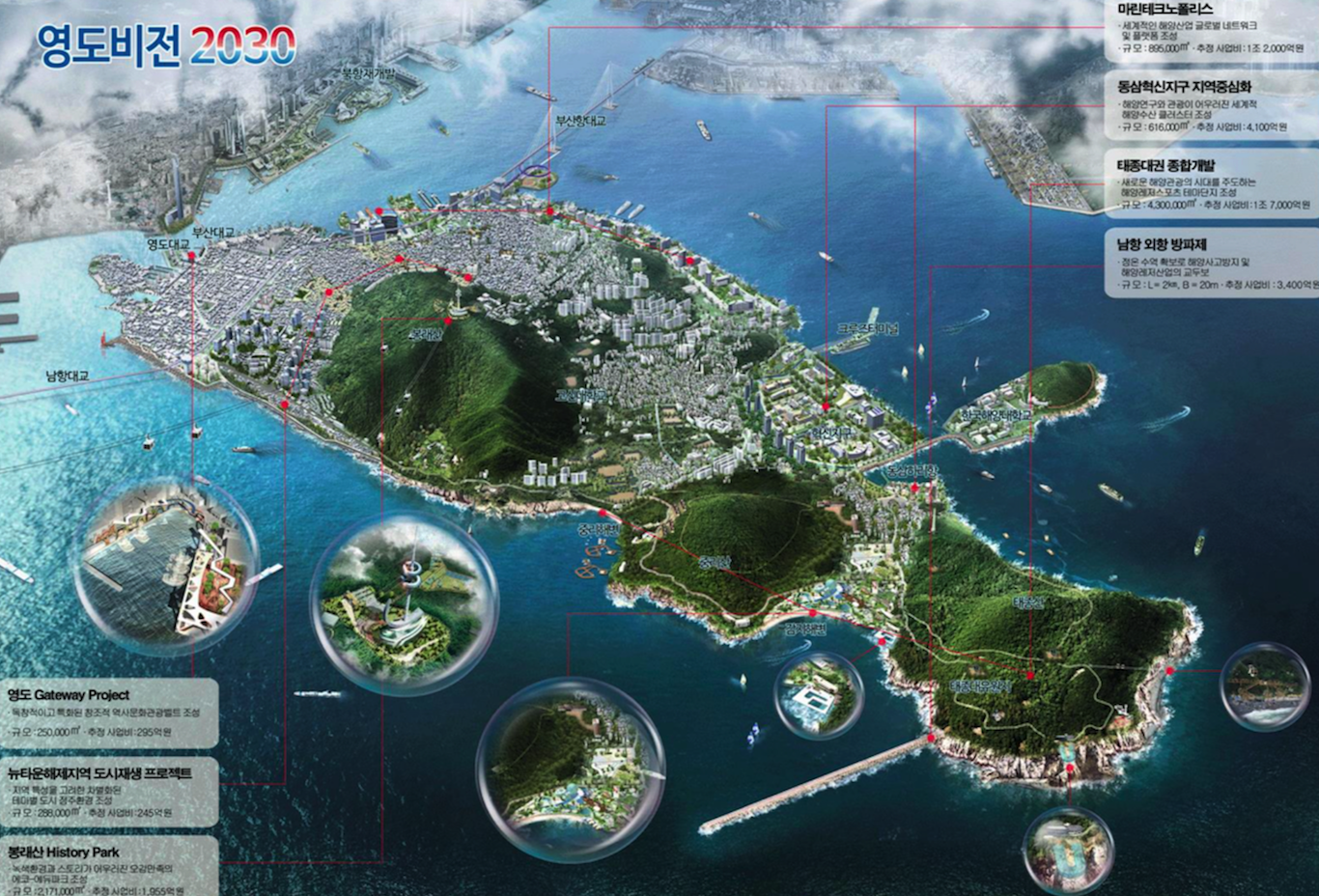 과거 낡은 부산의 섬마을에서 향후 관광, 해양연구, 도시재생, 봉래산 터널등 계속적으로 변화 발전하며