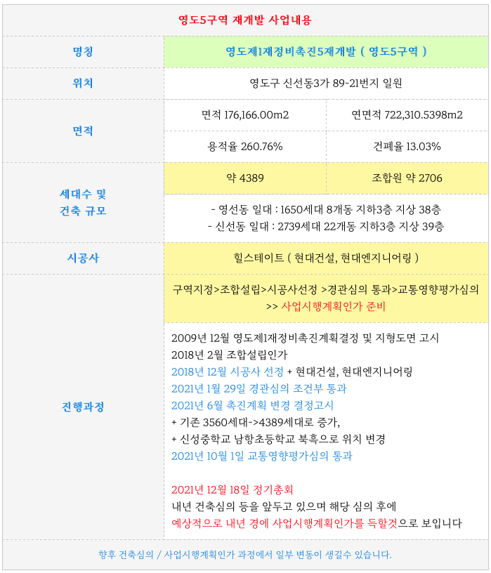 영도5구역 재개발의 2021년 정기총회는 특별한 이슈 안건이 없이 모두 가결되었습니다.