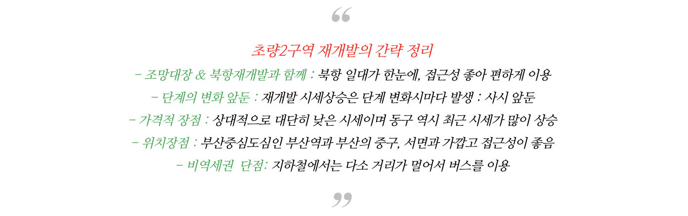 향후 초량, 수정동 등 일대가 크게 변화될 예정으로 초량2구역 역시 기대치를 더 높이고 있습니다.