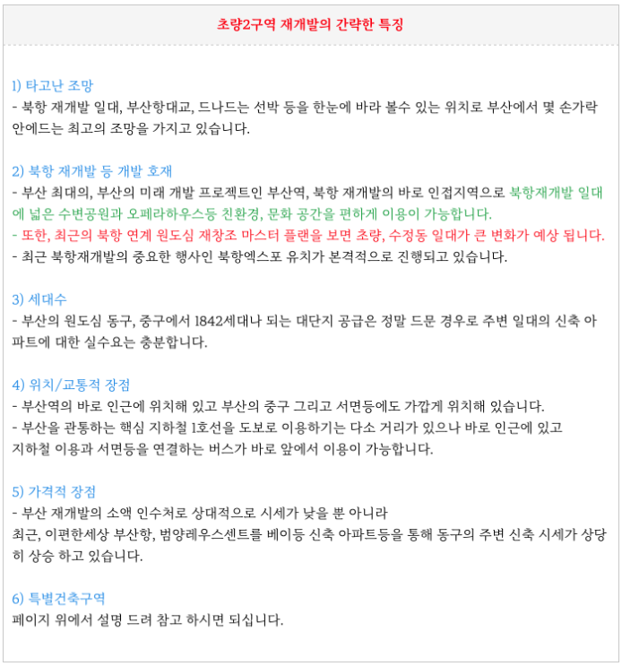 초량2구역 재개발의 특징을 간략히 다시 한번 정리하여 드리겠습니다.
