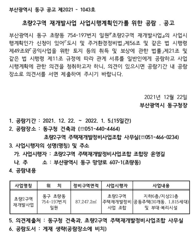 오랫동안 기다리셨던 초량2구역 재개발 조합원님들을 축하드립니다.