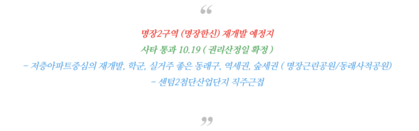 안녕하세요 로이의렛츠부동산 ( 제이에이케이부동산중개법인 ) 입니다. 오늘은 사타 통과 된 명장2구역 (명...