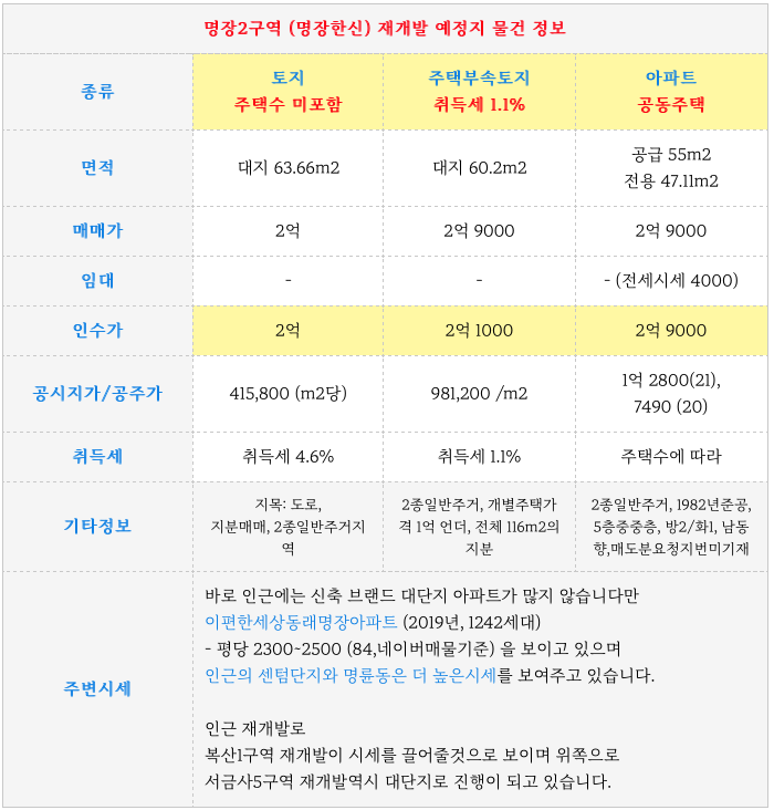 " (가칭) 명장2구역 재개발 (명장한신) : 사타통과 " - 토지 및 아파트 plus 명장3구역, 명장5구역