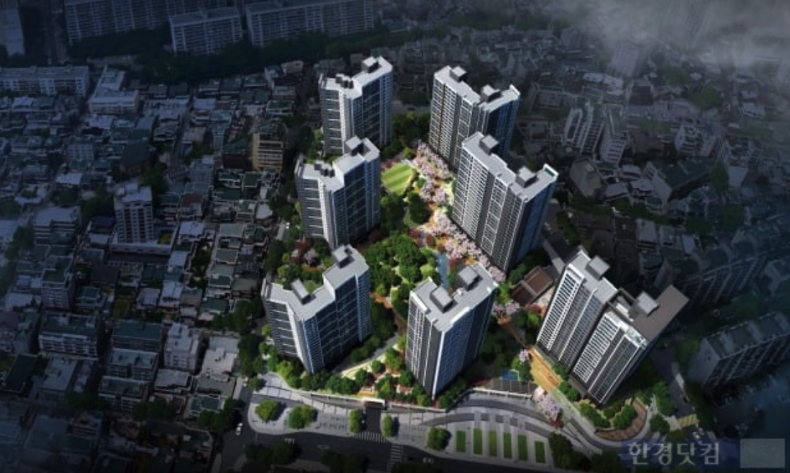 지하 2층~지상 25층 아파트 9개동, 총 764가구와 부대복리시설을 건축하는 재개발 사업입니다.