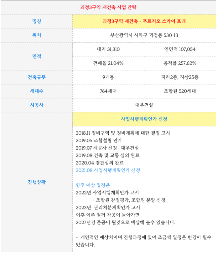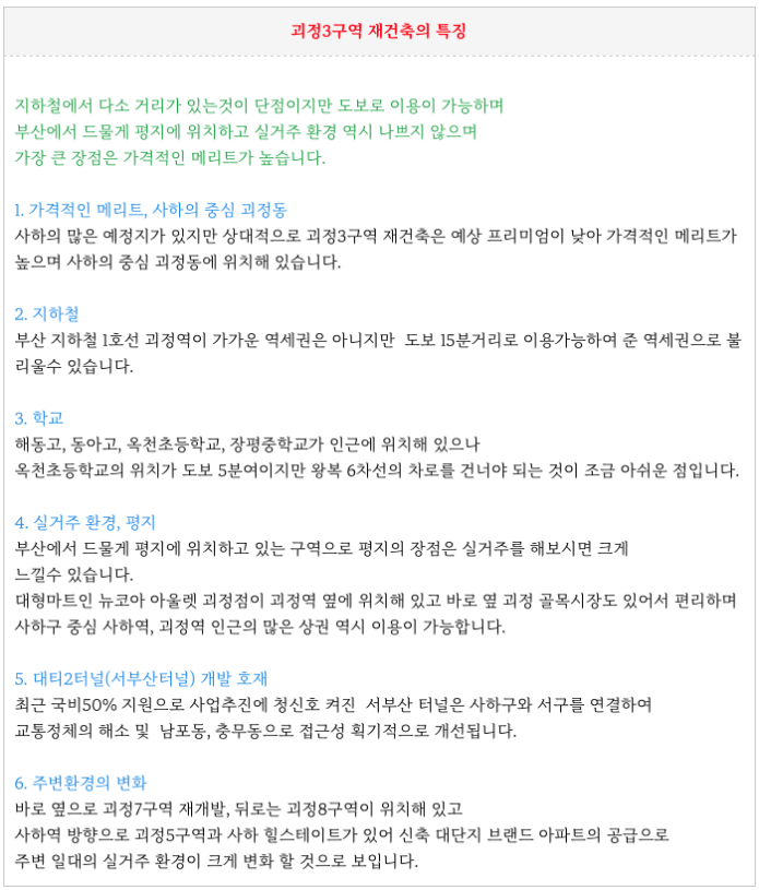 괴정3구역 재건축의 특징을 간략히 정리해 드리겠습니다.