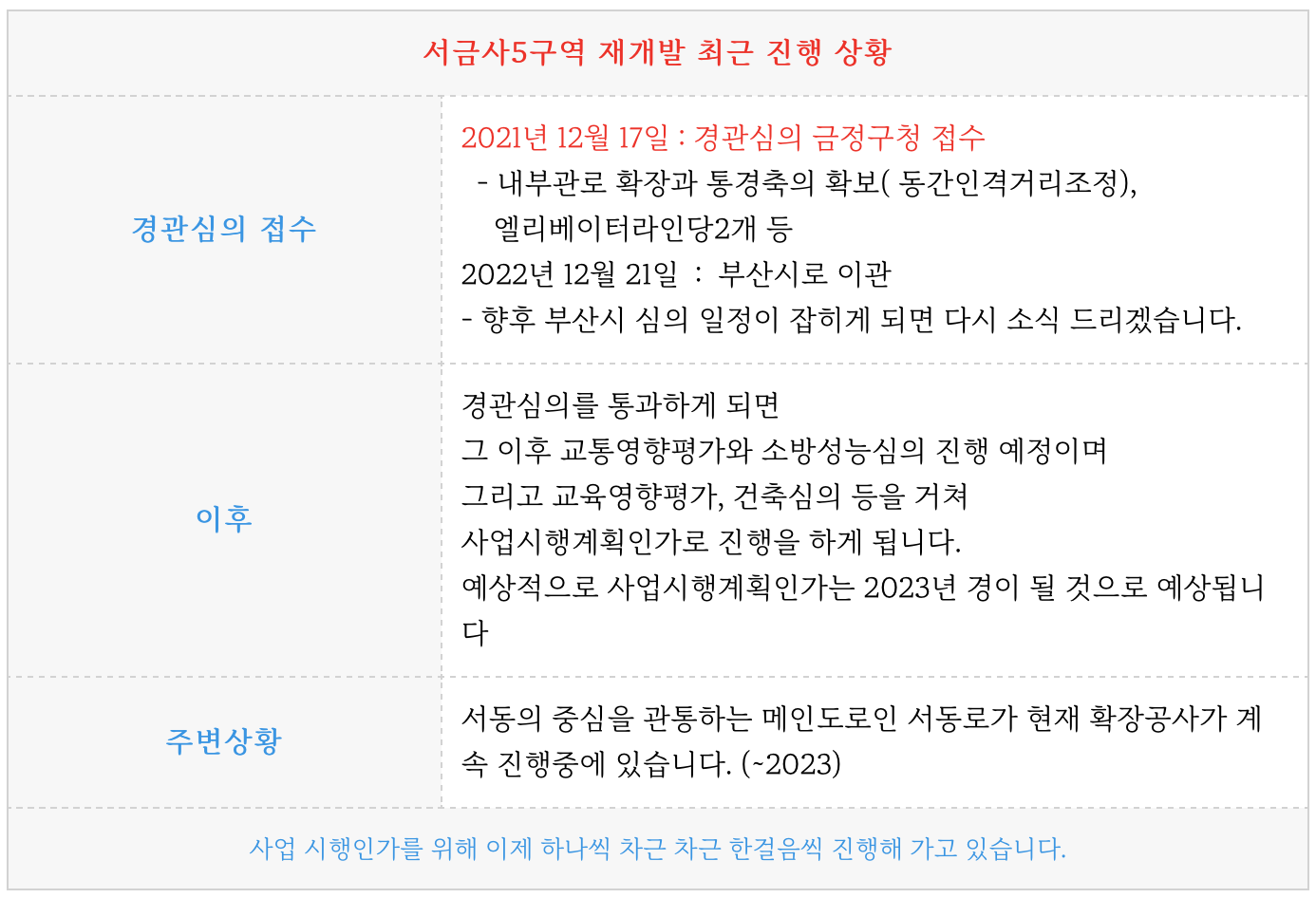 서금사5구역 재개발 경관심의 접수소식과 시세 최저 좋은 물건을 업데이트 해드리겠습니다.