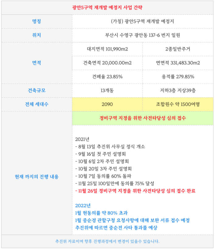 수영구 (가칭) 광안5구역 재개발 예정지의 구역 소개와 물건 정보를 드리겠습니다.