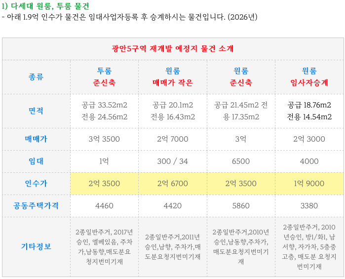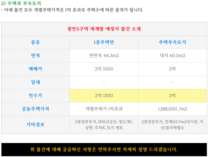 입지좋고 빠른 광안5구역 재개발 예정지의 물건들을 소개해 드리겠습니다.