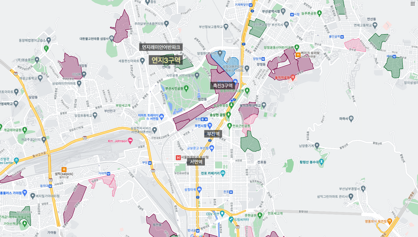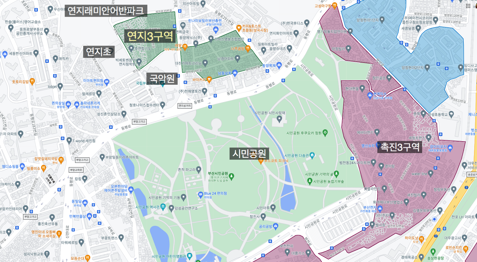부산 시민공원, 부산국립국악원 그리고 시세 높은 연지래미안어반파크 사이에 위치한 재개발 예정지로