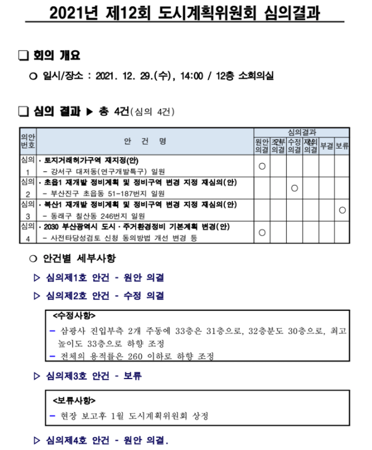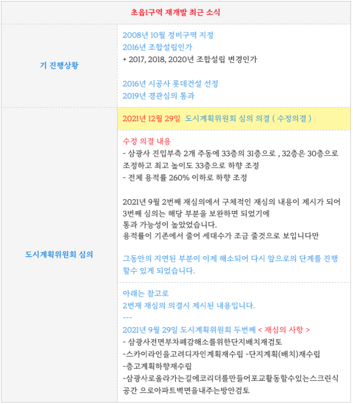 최근 도시계획위원회심의가 재심의 의결이 되어 다소 아쉬운 부분은 있지만