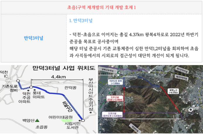 도심 숲세권 초읍1구역 재개발의 개발 호재를 간략히 정리하였습니다.
