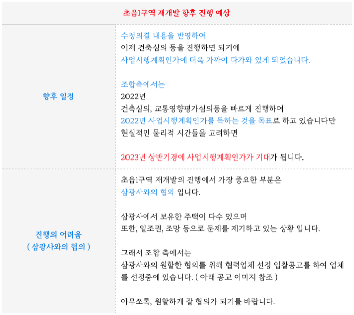 2) 초읍1구역 재개발 향후 진행 예상 일정