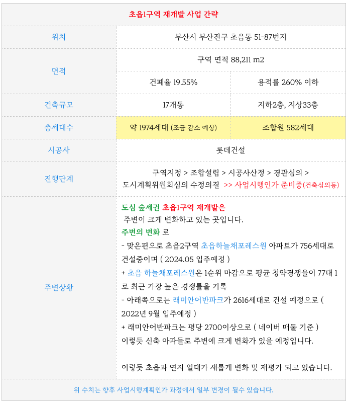 도심 숲세권 초읍1구역 재개발 의 최근 소식으로