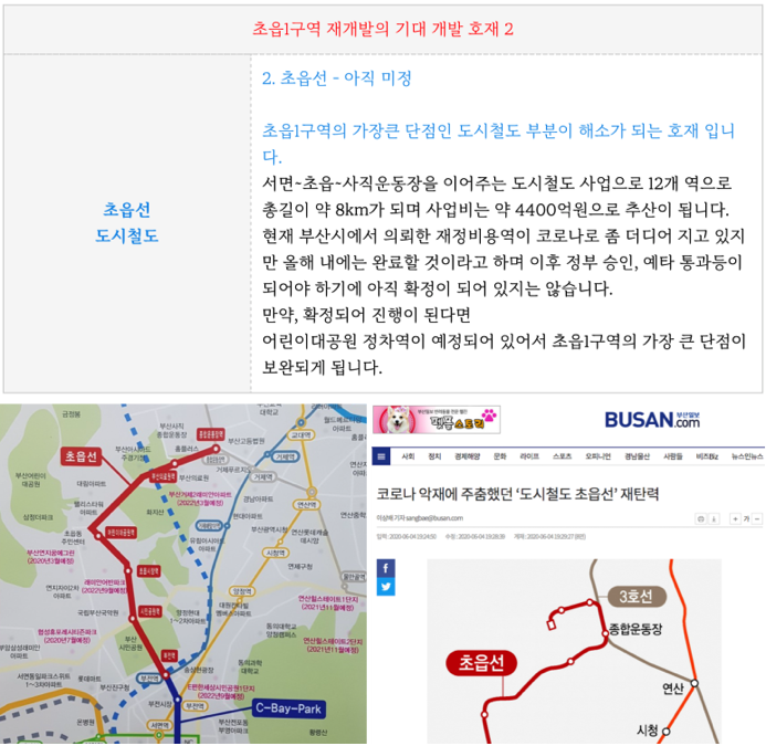 아직 미정인 초읍선도시철도는 가장 큰 단점인 지하철 비역세권을 보완해주고