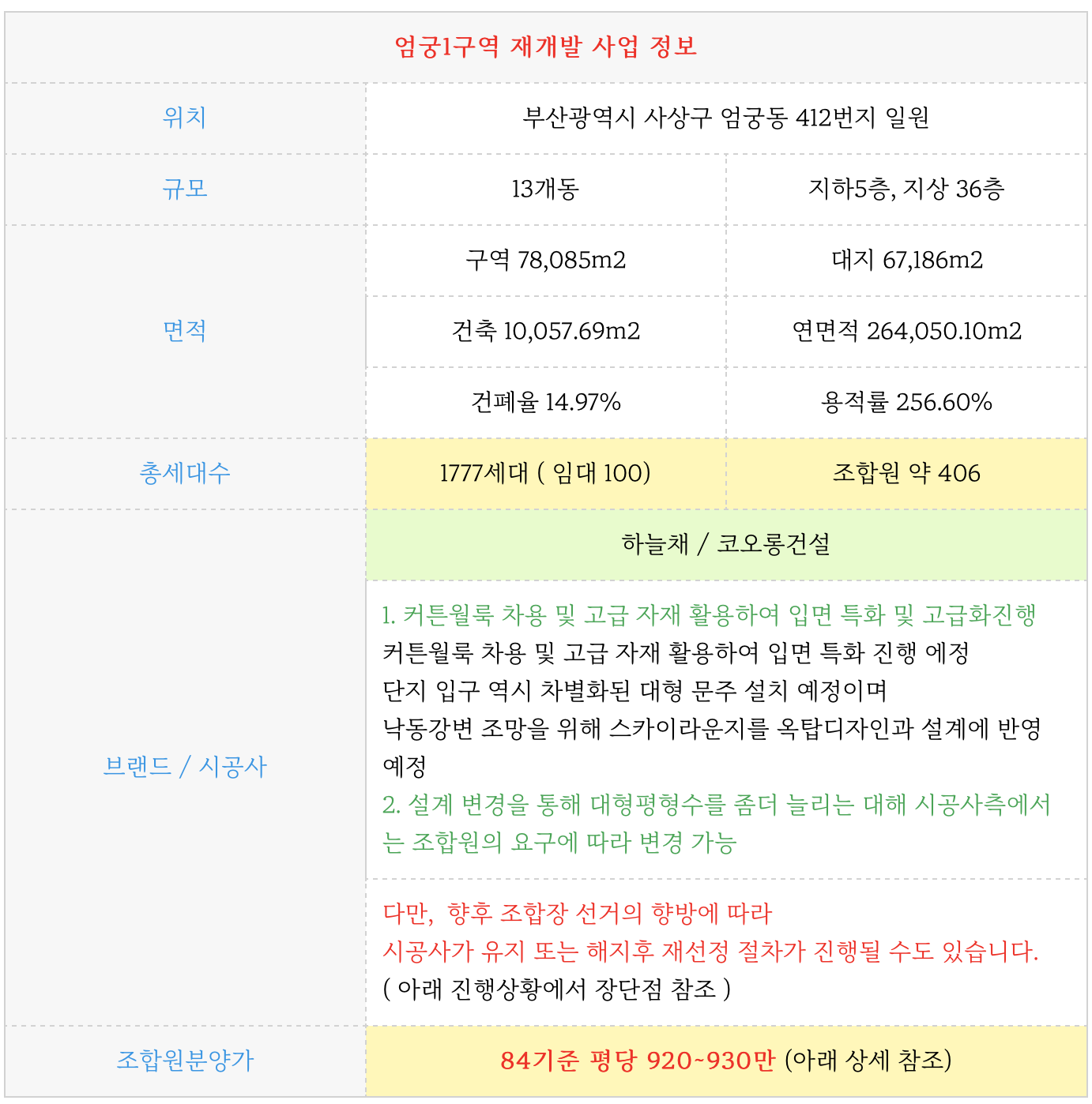 엄궁1구역 재개발의 특징을 간략히 정리하였습니다.