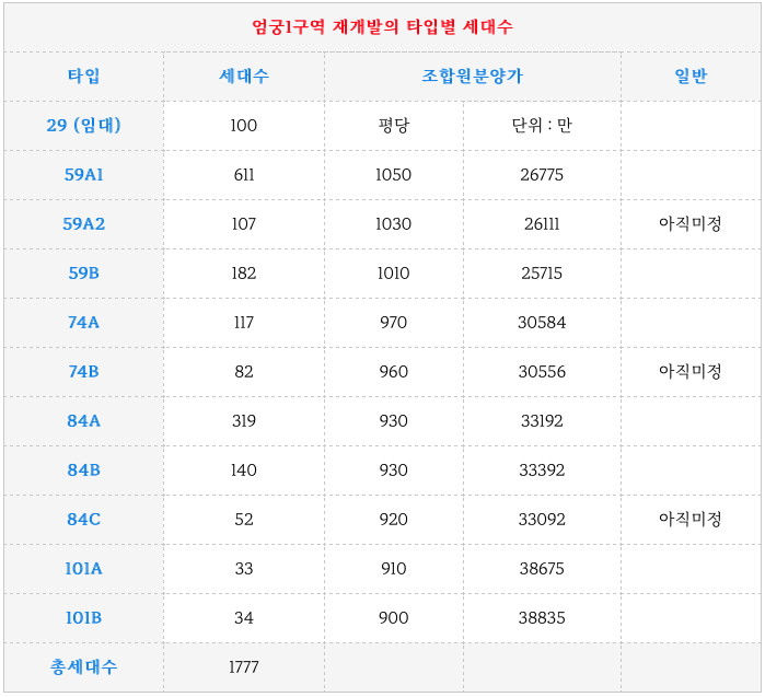 시공사와의 협의/변경에 따라 대형 평형이 조금더 늘수 있어 일부 변동이 생길수 있을 것으로 보입니다.