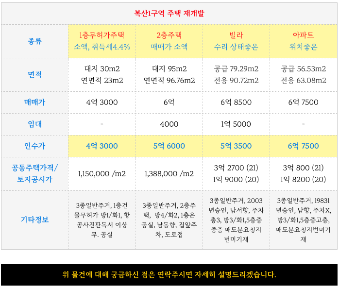 복산1구역 재개발 의 인수가 작은 물건을 업데이트 하여 소개해 드리겠습니다.