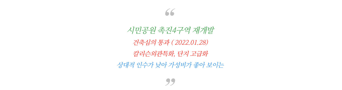 시민공원 " 촉진4구역 재개발 : 건축심의 통과등 진행소식 " : 가능 매물소개