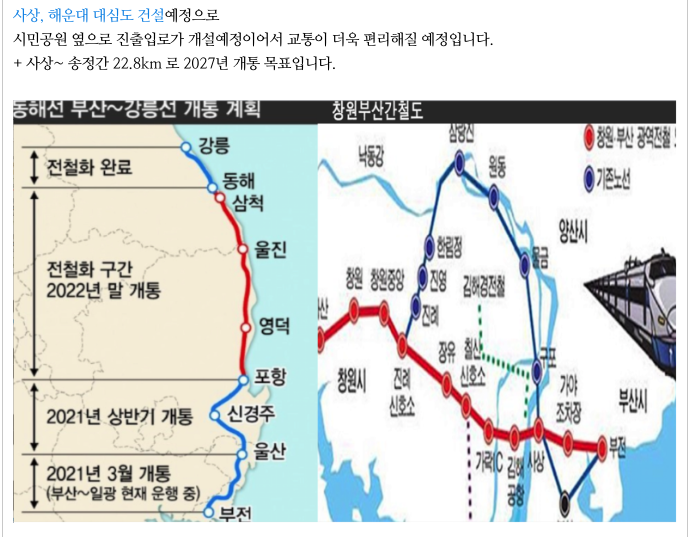 부전역 복합환승센터, 사상~해운대 대심도 등의 개발 호재가 함께 있습니다.