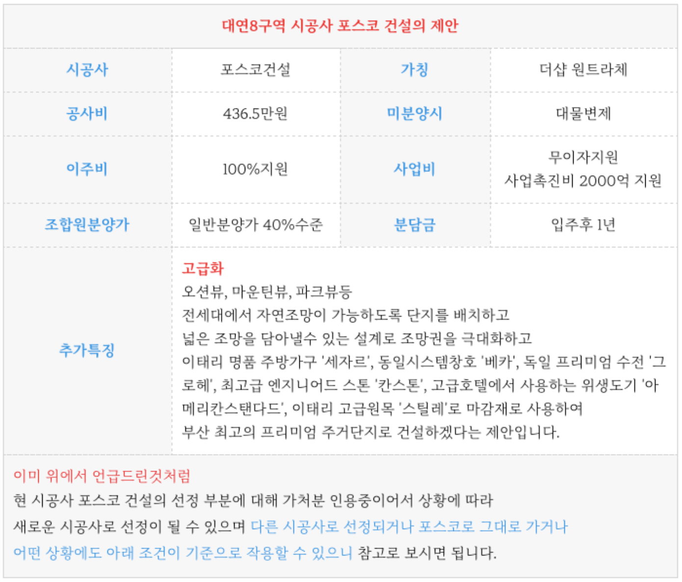 대연동의 잠룡 대연8구역 재개발 포스코 건설의 제안 내용을 간략히 정리하였습니다.