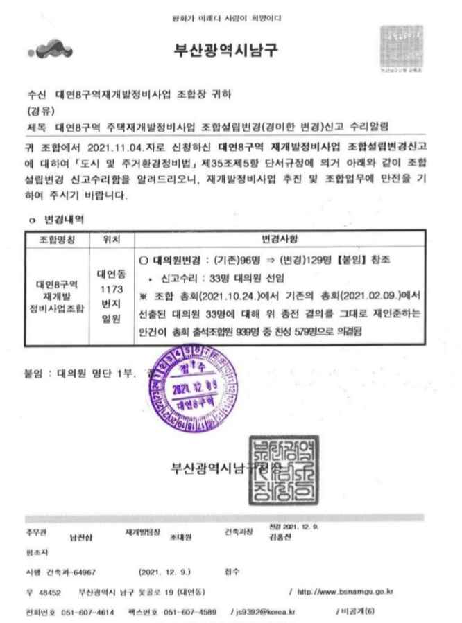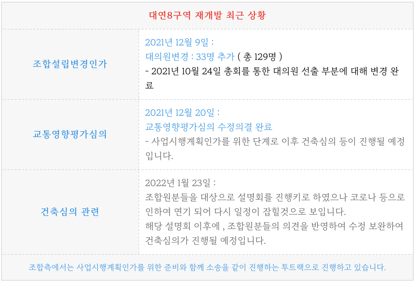 실거주좋은 남구 대연8구역 재개발의 최근 진행 상황 입니다.