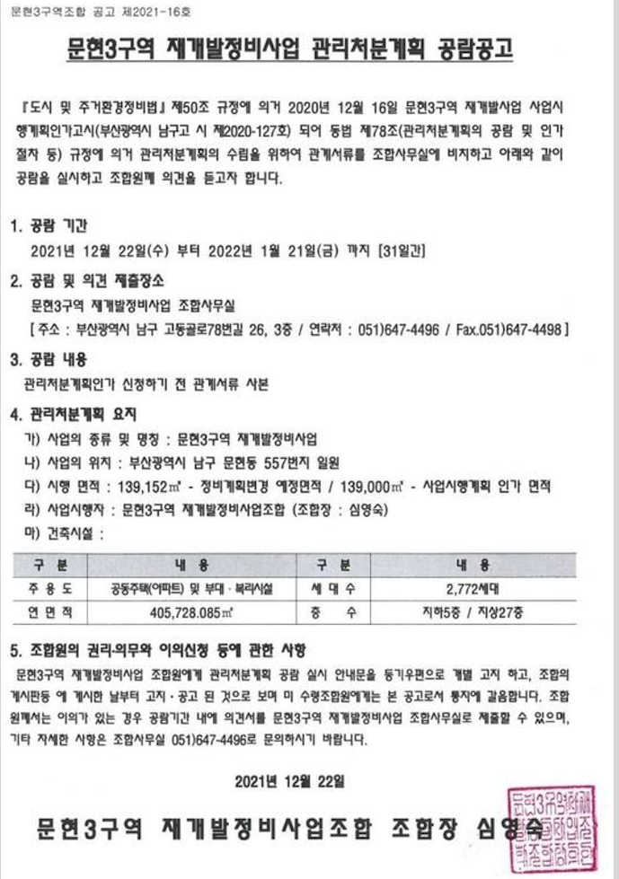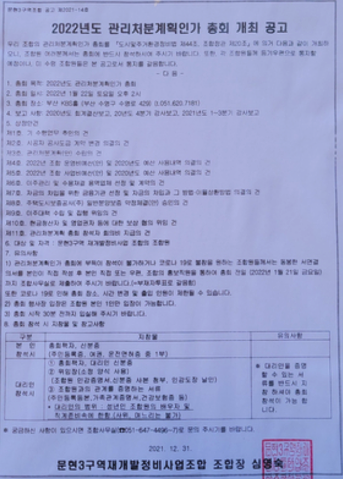 문현3구역 재개발 은 최근 관리처분계획인가를 위한 총회를 개최하였습니다.