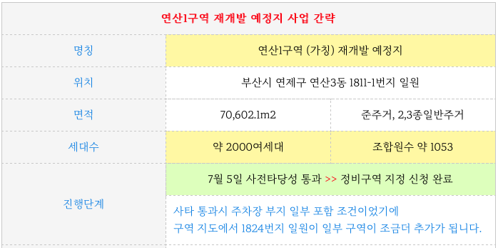 연산1구역 재개발 예정지에 대해 궁금하신 점은 연락주시면 자세히 설명 드리겠습니다.