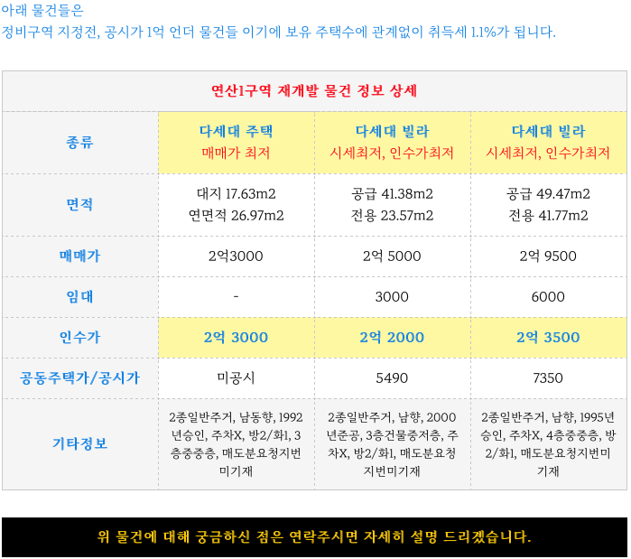 역세권 연산1구역 재개발 예정지 괜찮은 물건부터 업데이트 하여 드리겠습니다.