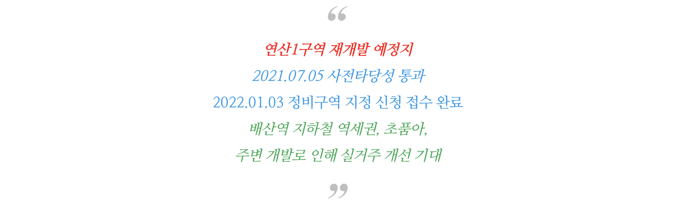 역세권 연산1구역 재개발 예정지의 개인적인 총괄평입니다.