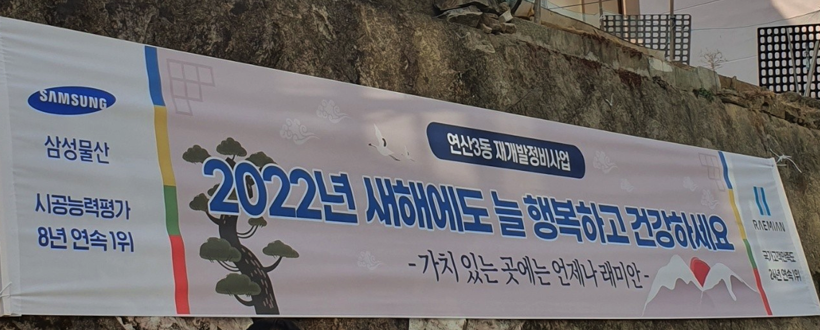 부산 최고 선호도를 가진 삼성 래미안의 플랜카드 가 붙어서 더욱 기대감이 높아지고 있습니다.