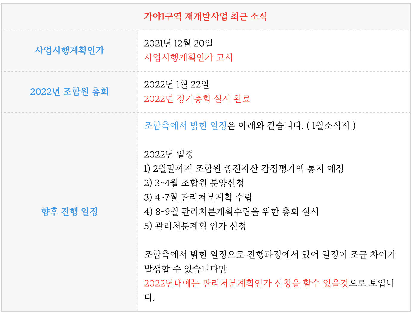 가야1구역 재개발 관처준비소식과 매물