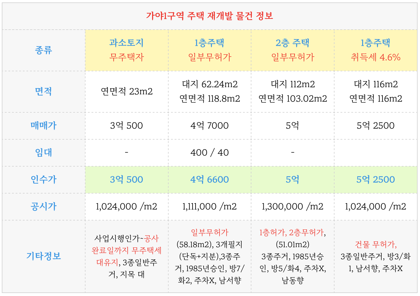 가야1구역 재개발 물건 부터 소개 해드리겠습니다.