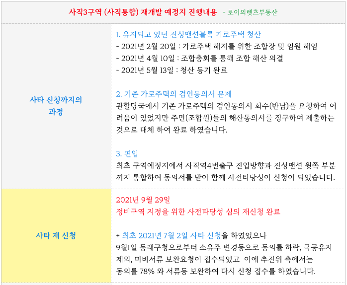 2021년 9월 보완하여 재 신청 하여 재개발의 공식적인 첫 절차가 진행중에 있으며