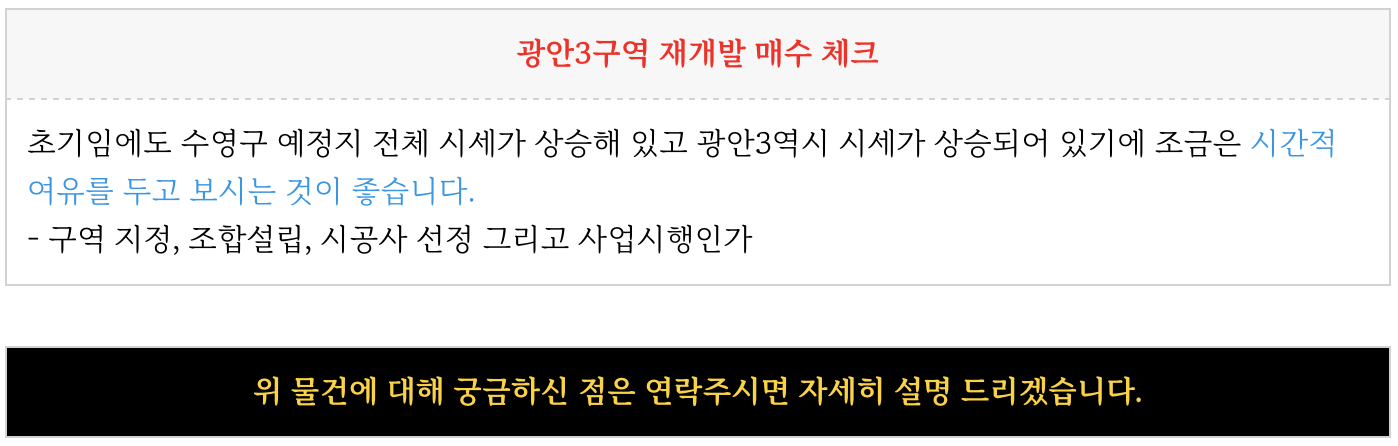 광안3구역 재개발 예정지 물건 정보를 소개해 드리겠습니다.