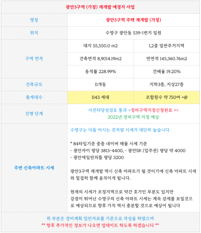 광안3구역 재개발은 최근 진행 소식 입니다.